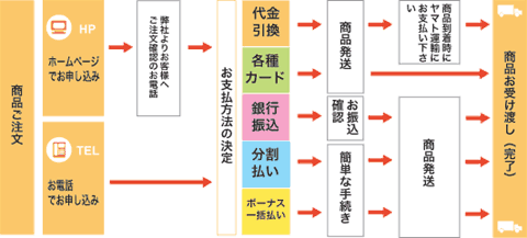 商品お届けの際に現金にてお支払い頂く方法です。(弊社よりお申込内容の確のお電話が完了次第、商品を発送させて頂きます)