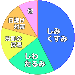 やはり一番多かったのが、女性の大敵・『しみ、くすみ』でした。