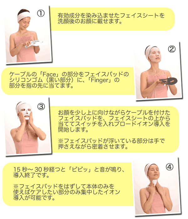 美容液によって、『しわ・たるみ』にもお使い頂けるのが、ブロードイオン導入器の大きな特徴。