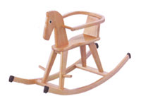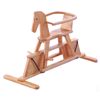 | ゆりかごのようなやさしい揺れが特徴の木馬。足が固定されているので床を傷つけません。 |