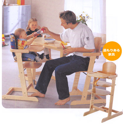 | 背もたれの高さが高いのが特徴です。おすわりをはじめたばかりの赤ちゃんから使えます。飽きのこないデザインに強固なつくり。座面の高さを変えることができるので、大人まで使えます。 |