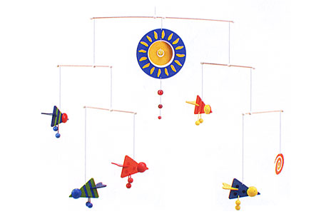 | モビールは、ほとんどの時間をベッドですごし、興味をしめす範囲が限られる赤ちゃんに最適な遊具です。ぬくもりのある木製でインテリアとしても人気があります。自然の風になびいて、鳥たちがゆらゆら飛んでいる様子は、子供から大人まで見る人の心を和ませてくれます。 |
