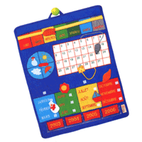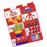 | はじめての数の概念と数字を学ぶのにぴったりのタペストリー。「車のタイヤふたつ‥‥‥」とお話をしながら子供に絵柄と数の関係を説明してあげましょう。足し算・引き算の勉強にも役立ちます。 |