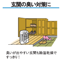 これまでのノンフロン式除湿機に比べて排気温度を抑える設計なので、お部屋の温度上昇も最小限です。 |
