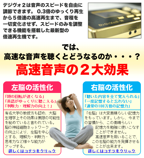 このデジヴォが再生する超高速の音声を聞き取ることによって、脳のさまざまな能力がトレーニングできます。