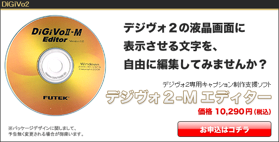 DiGiVo2(デジヴォ2)の音声に文字を割り当て、音声と同時にDiGiVo2(デジヴォ2)の液晶部分に文章を表示させる為の、パソコン用ソフトです。