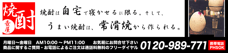 | 【ご案内】 当店は、安心通販エムロックが運営する焼酎サーバー専門ショップです。当店が販売する「常滑焼焼酎サーバー」は、昭和44年まで焼酎瓶を作り続けた唯一の窯元「常滑焼窯元六代目当主 山本幸治」の伝統の業から生み出されたモノのみを販売しております。他の焼酎サーバーとは全く異なり、その伝統の熟成具合は常にツウを唸らせるものです。本物の焼酎サーバーで昔ながらの本物の味をご家庭でお楽しみ下さい。 |