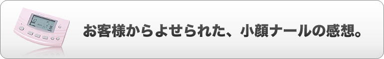 小顔ナールは実際に使っている友達がいて、それで知り、購入しました。 昔から顔と体のバランスが悪く、エラも若干はっていたせいか、余計に顔が大きく見えて、ずーーーとコンプレックスで、小顔になる為に、いろいろなことを試しました。 小顔になれる顔の体操の本を読んで試してみたり、コロコロと転がす美顔器も使いましたが、結局長くは続きませんでした。 小顔ナールは、まず使うのが気持ちいいんです。購入して2ヶ月経ちますが、今のところ週に2回は使用してます。 友人に化粧変えた?とか聞かれるようになり、成果が出てるかな?と思う今日この頃です。 |