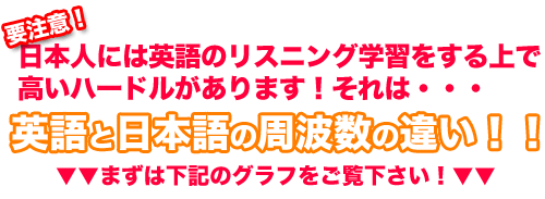 そのためネイティブな英語を聞くと普段聴き取れない音(周波数)が多く、戸惑ってしまい、また、聴き取れない音により英語のリズムやイントネーションも正確に取れなくなっております。