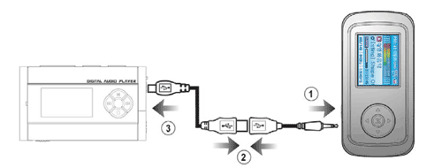 付属のUSB Host接続用ケーブルを接続し、コピーしたいUSB機器に接続。
