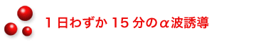 「バイオ・フィードバック・システム」(α波誘導)により脳波を、深いα波状態(リラックス状態)へと導きます。継続して高いα波状態を保ちことにより、超一流と呼ばれる高い集中力や想像力を開発し、無意識のうちに様々な潜在能力を開花させます。