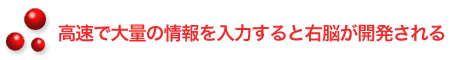 なぜ、速読が可能になっているかと言うと、理解を求めずただ高速に情報を入力することにより高速のコンピューターである右腦が働いているからです。(速読の場合は視覚の訓練が必要)