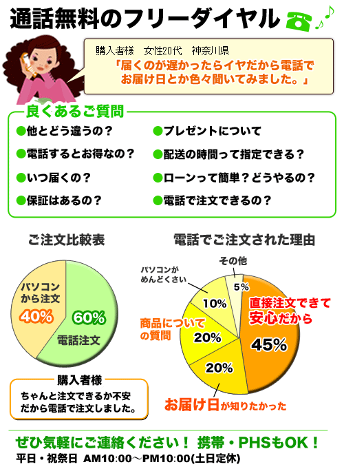 お電話によるご注文・お問合せを受け付けております。お気軽にお電話ください。