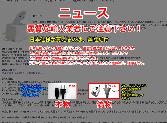 脱毛器シルキン正規店>> 個人輸入のご注意