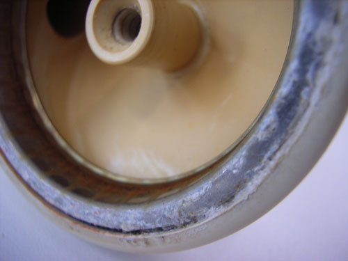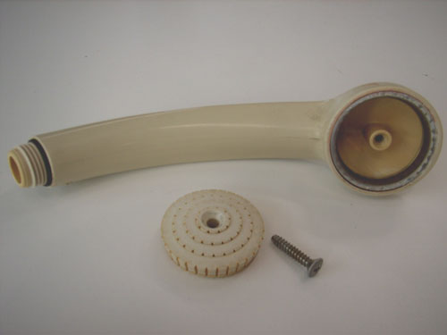 社員宅のシャワーヘッドです。なんだか白っぽいのってみんなカビなんでしょうか。。。