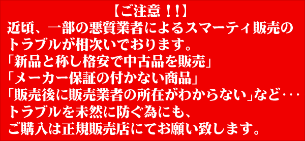 当店及び(株)エムロックのグループサイトにて販売しておりますスマーティは、全て新品・メーカー正規品です。中古品・新古品・質流品等は一切取り扱っておりません。もちろんメーカー保証が2年間つきます。 |