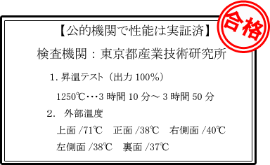 本製品は、公的機関によるテストを行い、1250℃まで昇温することが実証されています。安心して作品つくりに打ち込めます。