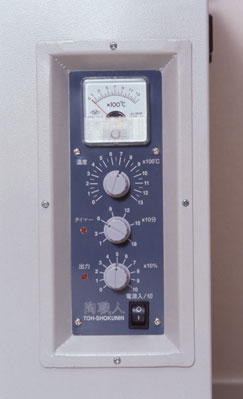 温度調整ツマミ(炉内を室温から1,300℃まで希望温度に設定できる。) |