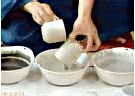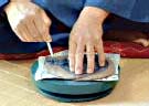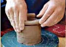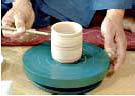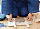 | 7.手動ロクロを廻しながら絵付けを行なう |