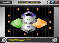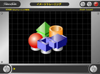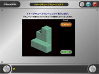 画面上のイメージキューブを立体的に頭の中でイメージ転換して、付属のイメージキューブ教材(天然ヒバ材製)を実際に手で動かしていきます。