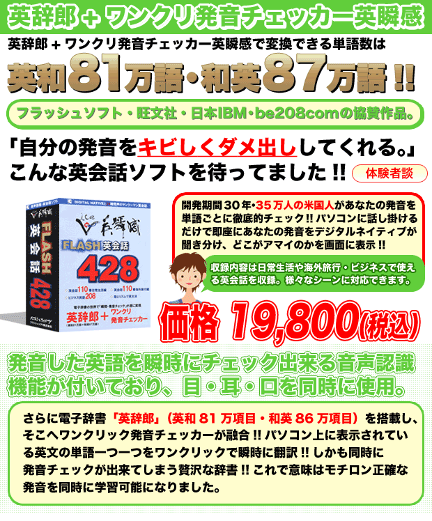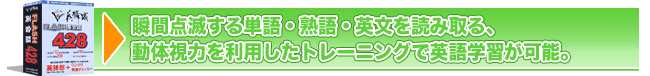 | 1/1000秒単位の自由な設定で瞬間点滅する単語・熟語・英文を瞬時に読み取り、英語を話したりタイピングをしたりする高速INPUT・OUTPUT学習法を採用しました。(フラッシュ特許・日本国第3300772号)。