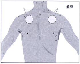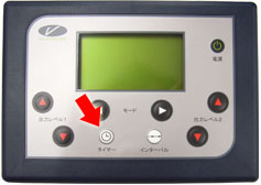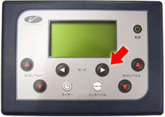 筋力トレーニングのブイトロンの音量を調節したい場合は、タイマーボタン(矢印左)を押しながら、出力レベルボタン(矢印右)を押して設定します。